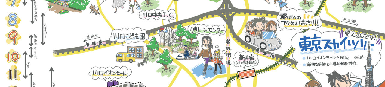 学区にある学校の情報、遊び場を多く盛り込み、親しみやすくしました。